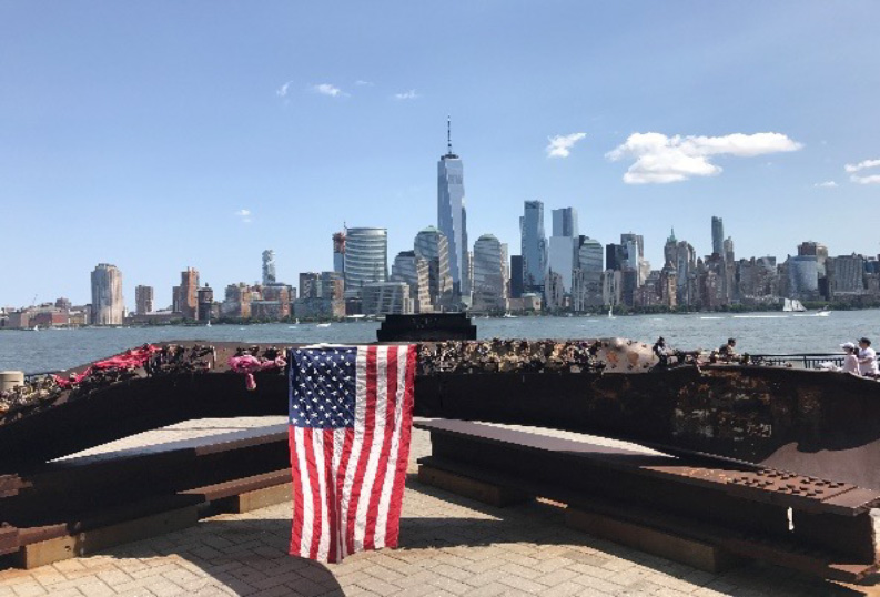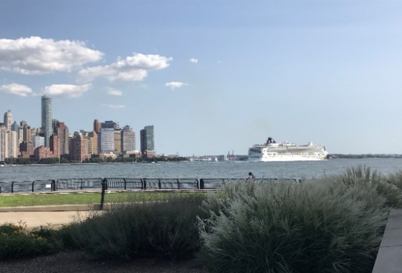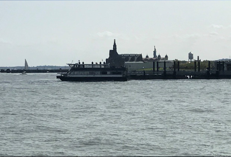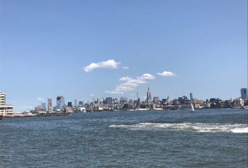 This view of New York – Manhattan was drawn in on a beautiful hot morning on Saturday 26th of August 2017 on a beautiful hot morning on Saturday 26th of August 2017 to the Verranzano Bridge and Statue of Liberty are visible