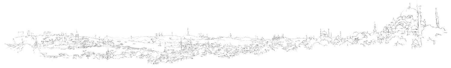 The view covers all Istanbul. The panoramic view takes nearly 270 degrees of the City. The original was created from midday until late afternoon on the 29th of September 2024 and measures 150 x 39 cm.